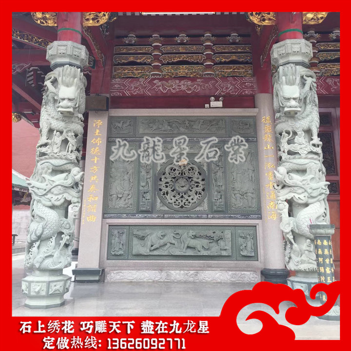 寺廟龍柱也稱為石雕龍柱,都是采用石料雕刻而成的龍柱。寺廟龍柱規(guī)格的大小也是影響石雕龍柱價格要多少錢的主要因素之一。越大的材料產(chǎn)生的原料費(fèi)用,加工費(fèi)用,工具損耗,雕刻部位,人工時間費(fèi)用都會增加,所以規(guī)格大工藝復(fù)雜的石雕龍柱價格自然就越會貴。
