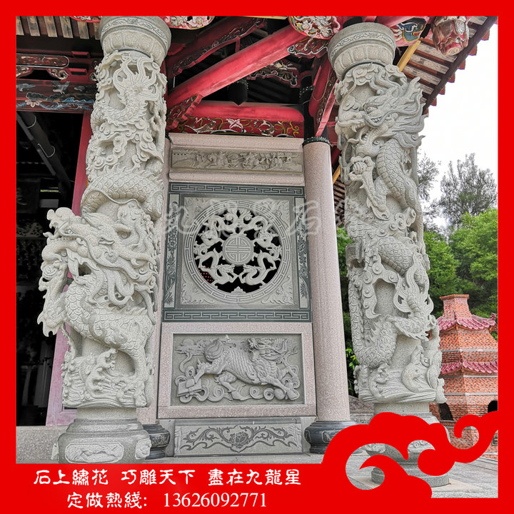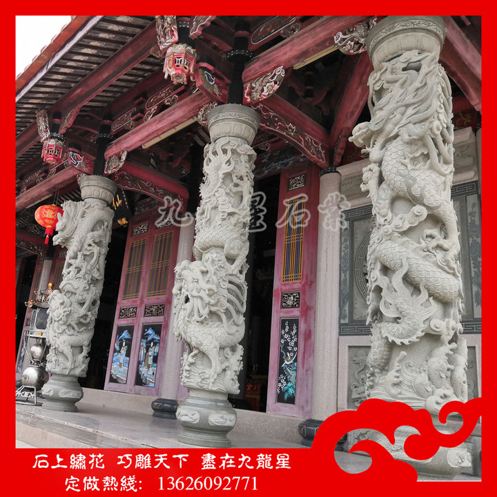 閩南寺院的石雕龍柱 寺廟龍柱 廣場龍柱
