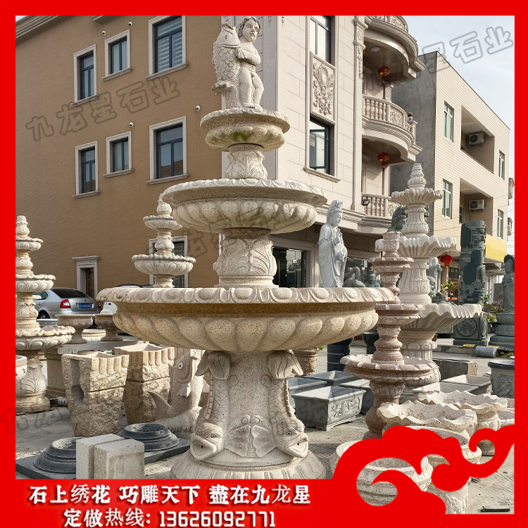 室外石材噴泉雕塑 銹石石雕噴泉廠家