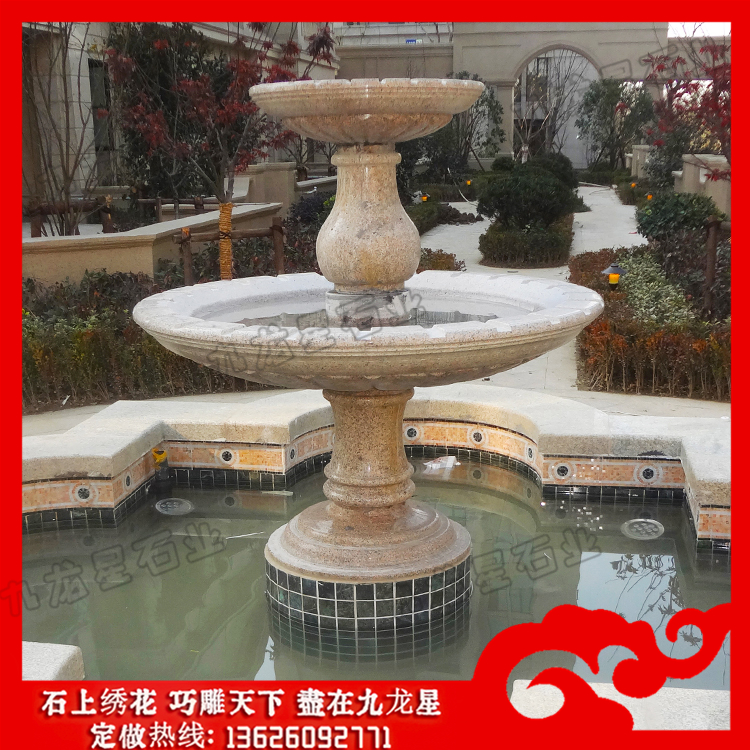 水缽噴泉(生產(chǎn)加工石雕水缽 石雕雙層水缽圖片)——九龍星石業(yè),廠家直銷。