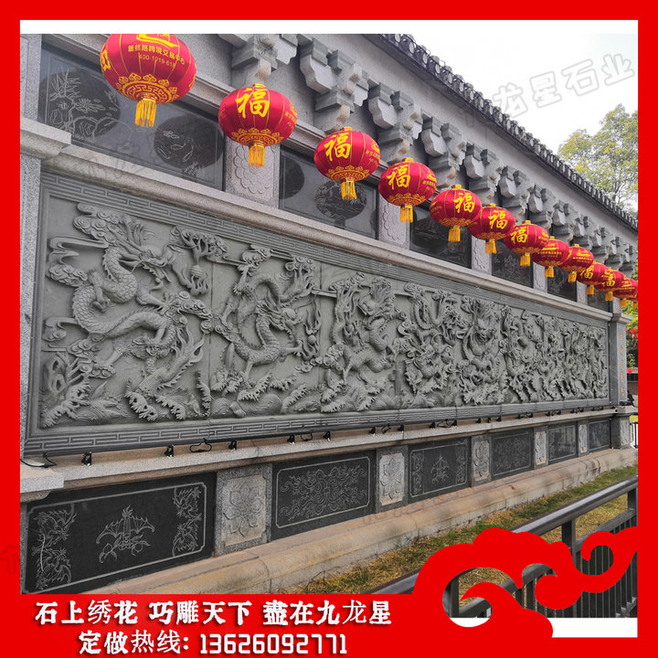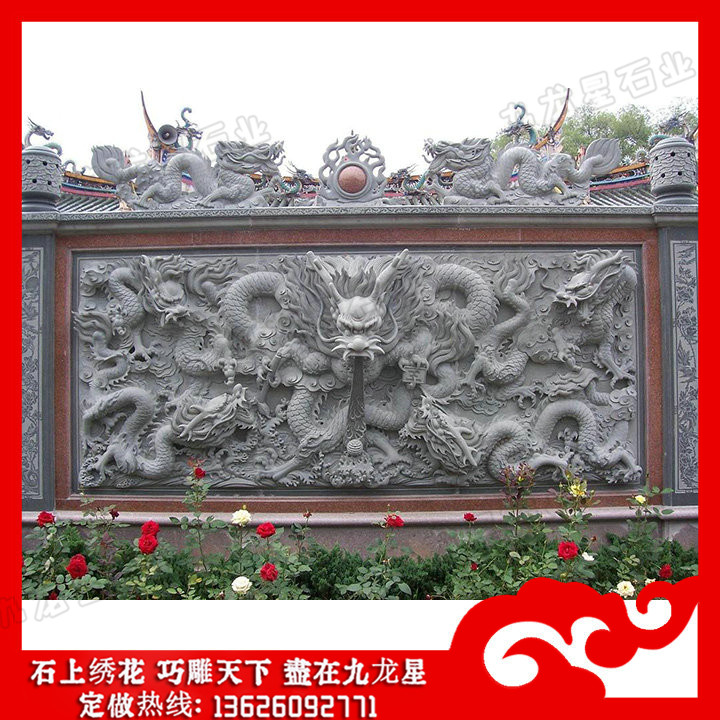 石雕九龍壁畫 石雕影壁墻浮雕圖案
