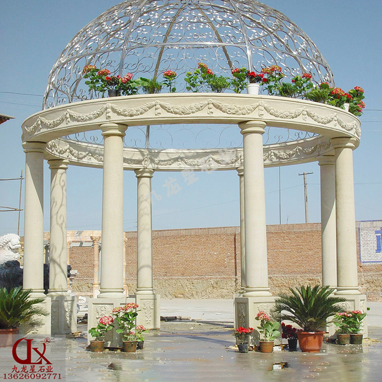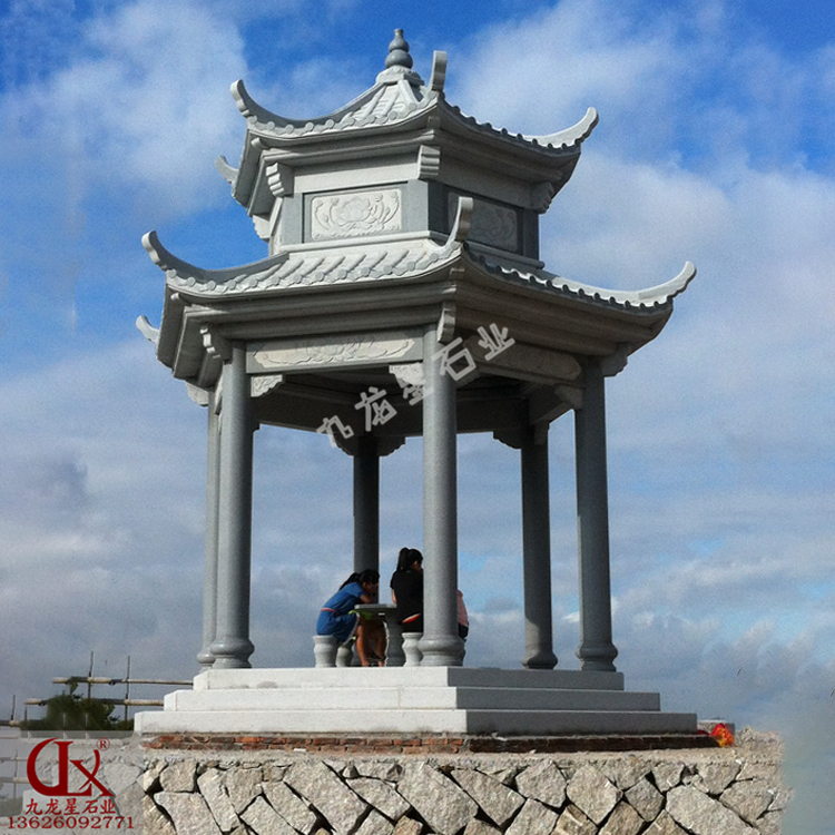 人們根據(jù)不同的建筑特點(diǎn),在六角石雕涼亭雕塑的柱子、亭面和亭檐之上雕刻龍鳳以及吉祥裝飾等圖案紋樣,與建筑周圍的環(huán)境相融合,起到美化、渲染氛圍的作用。我們平時所見到的石雕涼亭有六角形、八角形、圓形、單層、雙層等形式,庭妍一般都會雕刻一些圖案,采用雕刻各種技法,雕刻有陰線花紋,高浮雕、透雕、文字楹聯(lián)等各種不同的裝飾。
