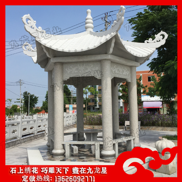 石雕亭子(一座石制涼亭造價(jià) 六角石涼亭設(shè)計(jì)圖)——九龍星石業(yè),二十年雕刻工藝。