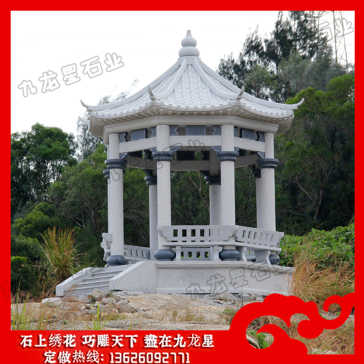 石雕涼亭(石頭雕刻亭子及價(jià)格 石頭八角亭子圖片)——九龍星石業(yè)。