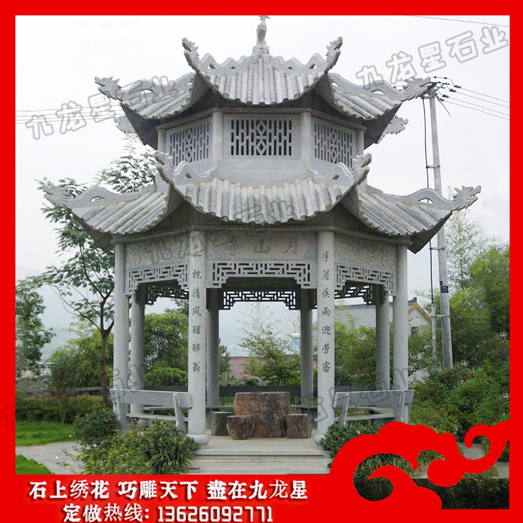石頭雕刻亭子及價(jià)格 石頭八角亭子圖片