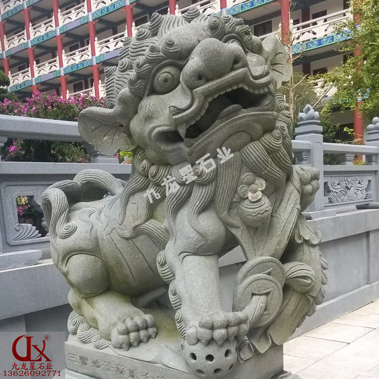 寺院門口石獅子一般都是左公右母,公獅張口注視來往信眾;母獅子閉口護(hù)子,表現(xiàn)傳統(tǒng)社會(huì)男尊女卑、各司其職的特性。民間習(xí)俗獅子是鎮(zhèn)宅神獸。也有避邪的作用,而且獅子的嘴一個(gè)張開一個(gè)閉合,兩者代表吐納之意,有些放石雕麒麟,麒麟也是神獸,而且有助于風(fēng)水,特別對(duì)那些門對(duì)水(河,江)的,有馱水的作用。