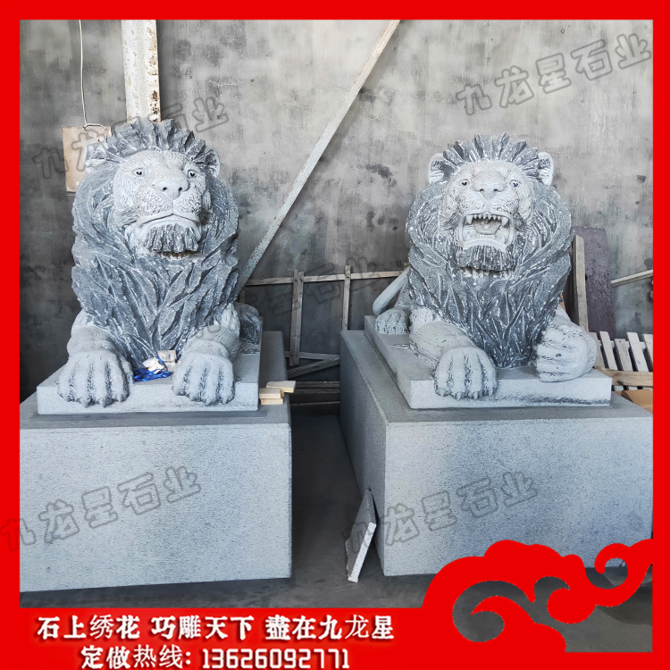 青石獅子擺件價格 家門口獅子雕刻廠家——九龍星石業(yè)。