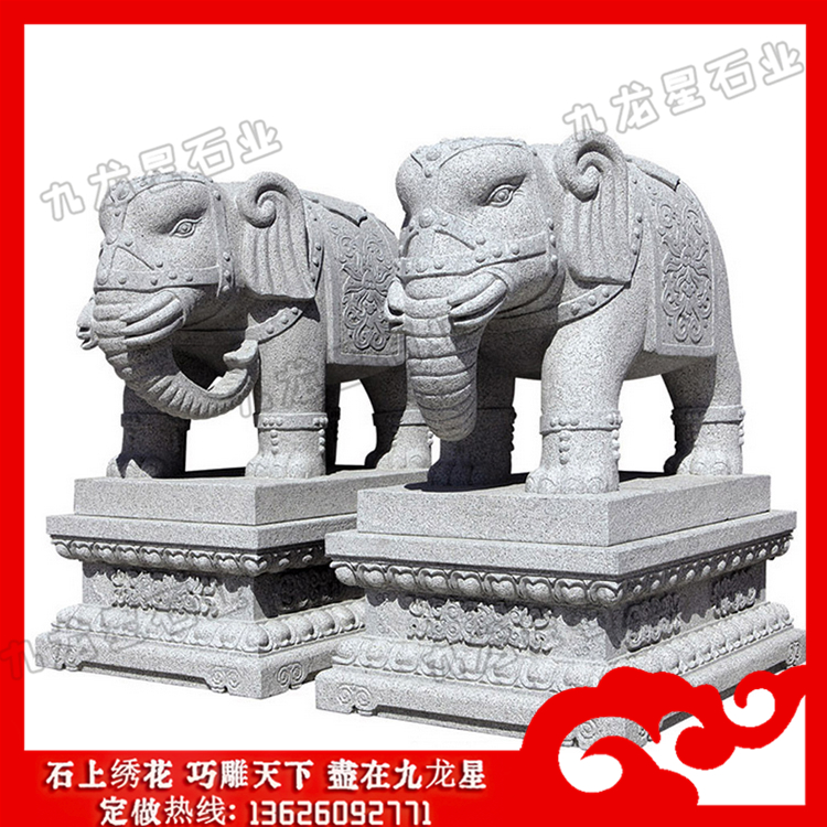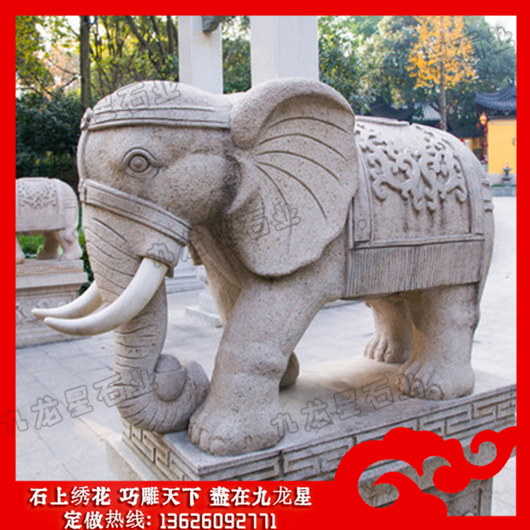 寺院石雕大象加工制作的造型一般為六牙象,身上雕刻具有寺院或佛教代表寓意的圖案,做工精細(xì),六牙整齊,擺放在山門前面或是寺院大殿入口處,可以很好地裝飾門面。石頭制品擺放在室外可持續(xù)成百上千年之久,就算建筑物不斷重修,石雕大象依然可以屹立不倒。文革時(shí)期古剎寺廟被毀,zui終能尋回遺跡并還原原貌靠的就是門口的石雕大象擺件或者其他石雕。