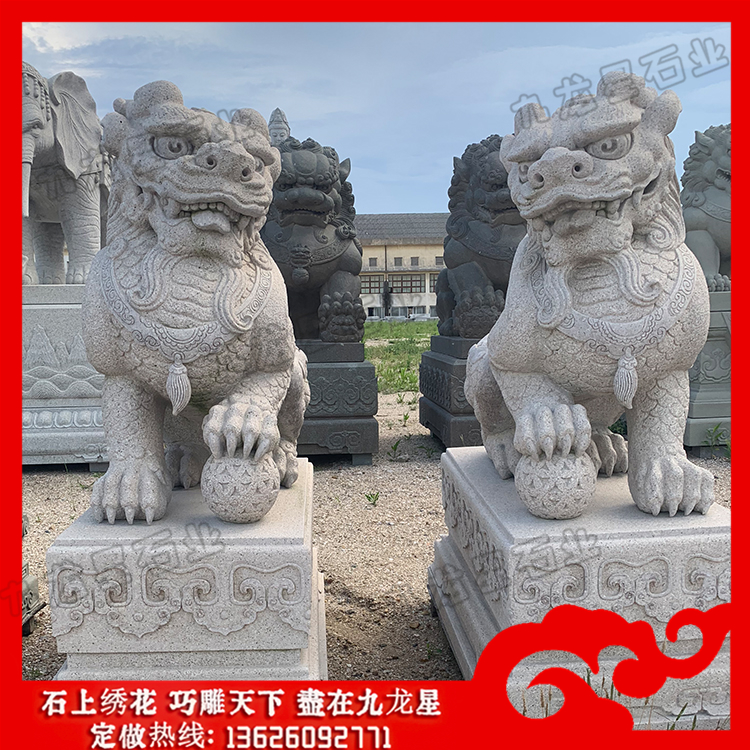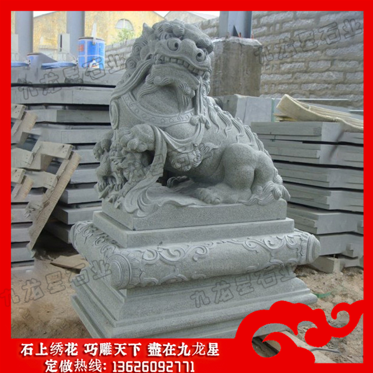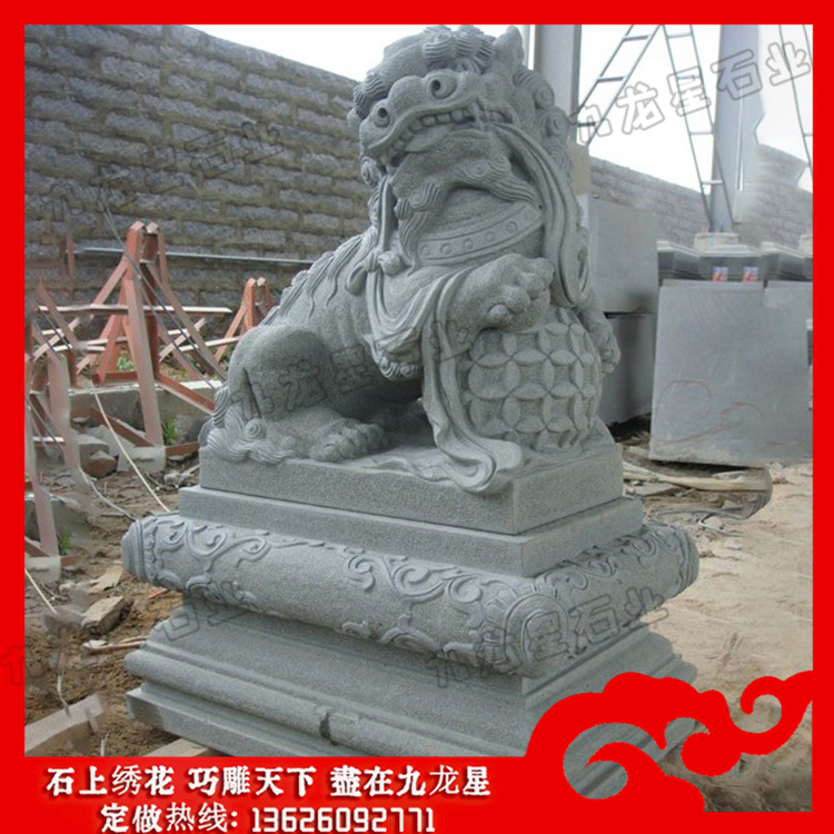 石雕潮汕獅圖片造型既象獅子,又不象獅子,是一種經(jīng)過(guò)夸張美化了的藝術(shù)形象。按著名木雕藝術(shù)家張襤軒的傳藝口訣:“廳獅十二兩頭”意思是潮汕獅頭的特色,著重于夸張獅頭,突出重點(diǎn)。石雕潮汕獅獅頭高昂。鼻大嘴闊、雙目圓瞪,頭和腳遍布卷毛,身披鬃毛道道,既符合獅子的生態(tài),又同整體的夸張相協(xié)調(diào)。頭大身小,但因坐勢(shì)十分得體,因而令人感到它體態(tài)渾厚有力而工整優(yōu)美,莊嚴(yán)雄偉而 生動(dòng)有趣。