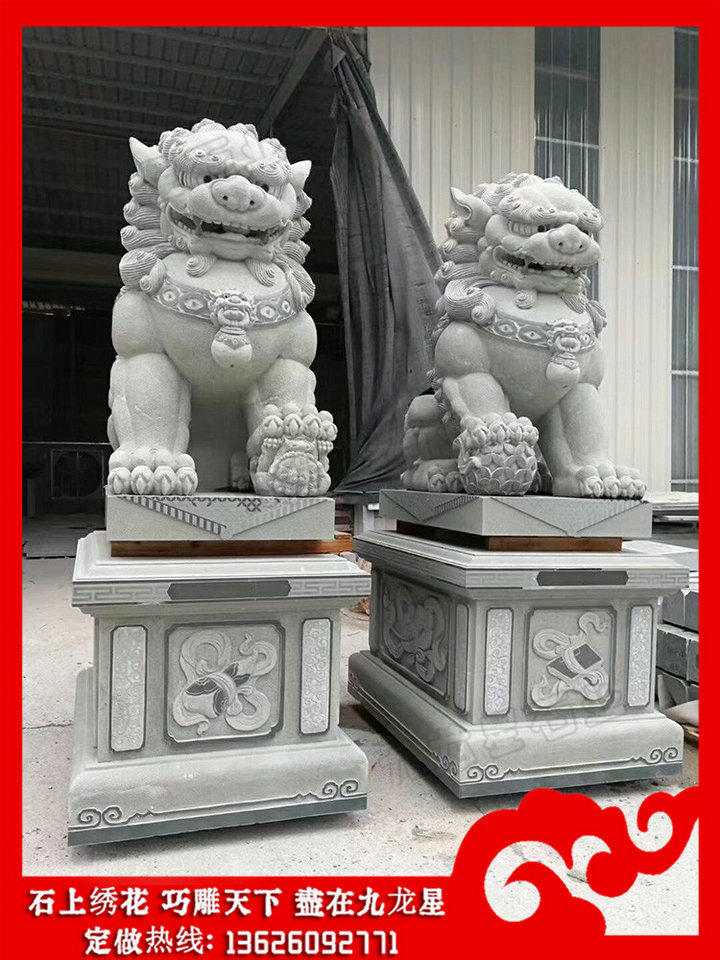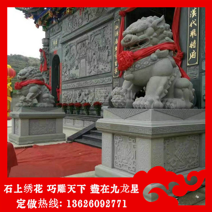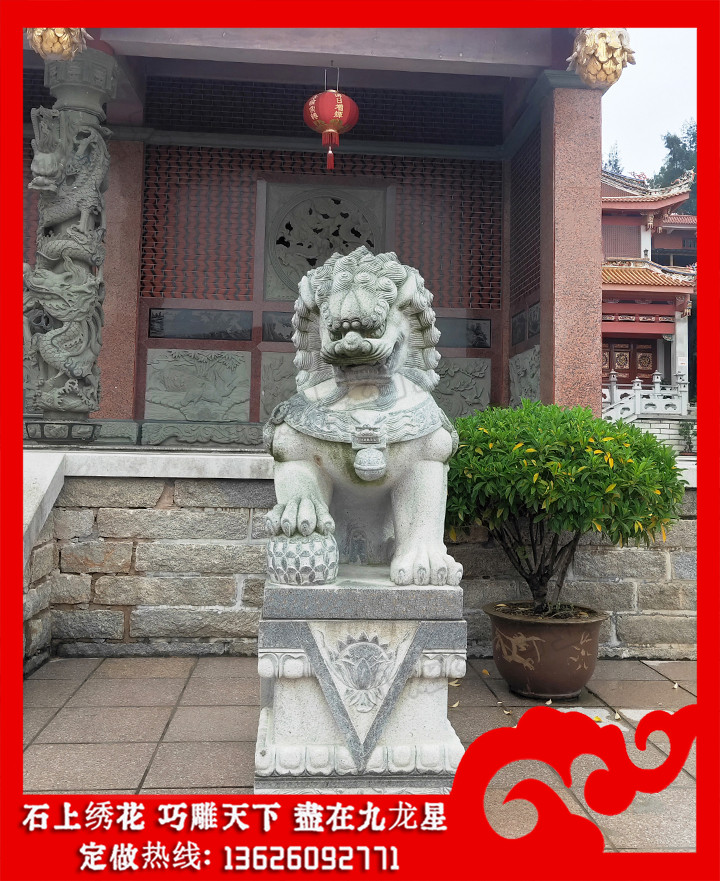 石雕獅子(祠堂前石獅子 石頭獅子價格和尺寸)——九龍星石業(yè)。