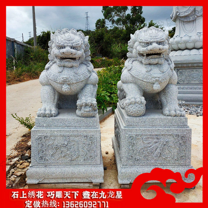 大門口的獅子石雕報(bào)價(jià)有高有低,一般常見的石獅子的圖片尺寸有:1米、1.5米、1.8米、2米、2.5米、3米、3.5米、4.18米等。大部分石獅子都是定制,所以高度和大小都會(huì)根據(jù)具體情況而定。