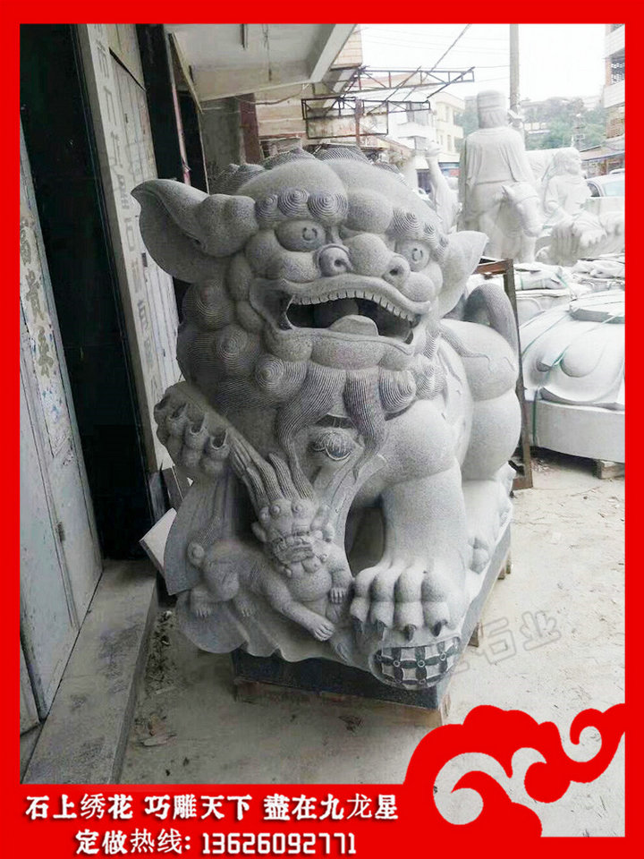 鎮(zhèn)宅石雕獅子的擺放也有規(guī)矩,成對稱性,位置與我國男左女右的習俗相同。即當人走出大門時,雄獅安放在人的左側,而雌獅則是在人的右側。