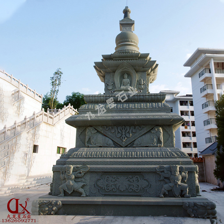 寺廟石頭塔哪里定制 七層佛教石雕玲瓏塔定做——九龍星石業(yè)。