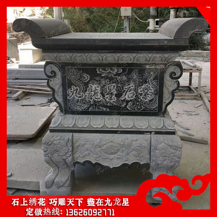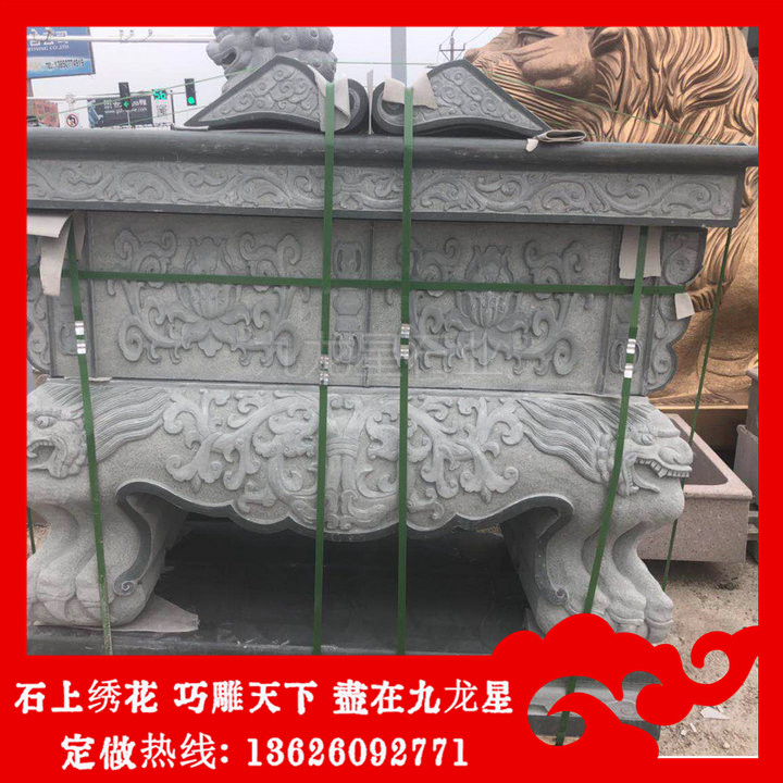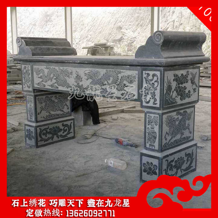 像有的石雕供桌我們是采用優(yōu)質(zhì)的花崗巖雕刻而成,顏色清新淡雅,樣式是屬于簡單的款式,四周點綴的花草圖案采用圓雕浮雕等工藝手工制作,給人的第一種是古典文雅的雕刻樣式,也給人一種莊重感,給前來參拜進(jìn)香者,一種觀念上的心理暗示,從而達(dá)到虔誠者更虔誠的心理引導(dǎo)作用。若問石雕供桌哪里有賣,就來惠安九龍星石業(yè)。