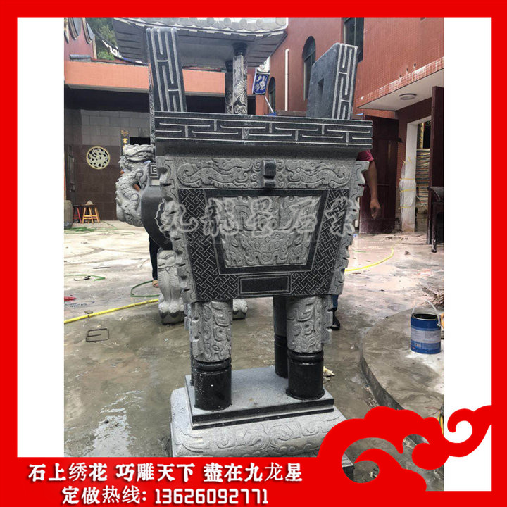 寺廟外用香爐石雕的種類繁多,不同形狀的寺廟香爐鼎,供在不同的位置、焚燒不同的香。天圓地方,這是古代人對(duì)宇宙看法,傳統(tǒng)風(fēng)水學(xué),亦套用了這一種看法。自古代以來(lái),歷代帝皇向天祭祀時(shí)所用的爐,都是石雕制造。