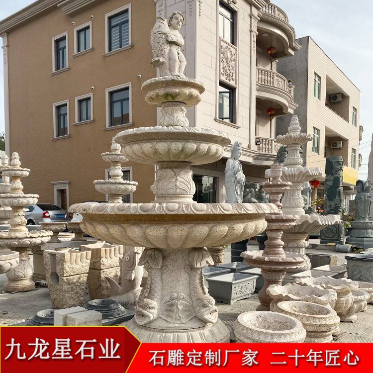 別墅噴泉效果圖 別墅石雕噴泉水池圖片樣式——九龍星石業(yè)。