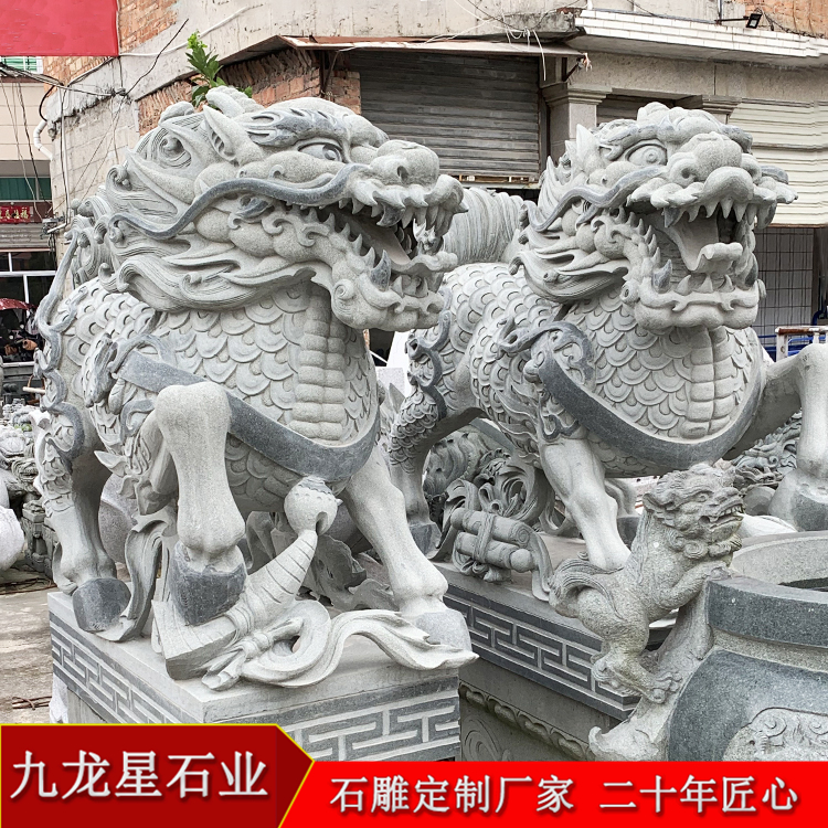 石材麒麟圖片大全 青石石雕麒麟定制廠家——九龍星石業(yè),二十年匠心。