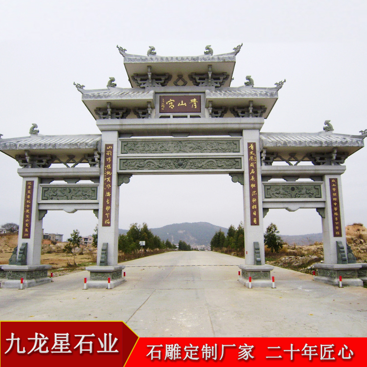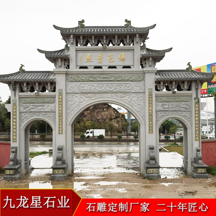 石牌坊又稱石牌樓,在封建社會是為表彰功勛、科第、德政以及忠孝節(jié)義所立的建筑物。以景園、街道、陵墓前、寺院為多。寺院牌坊一般都是立于寺院的入口處。村口石牌坊一般也是立于村莊入口處,或者于街道上。石牌坊哪家好?找九龍星——20多年的石牌坊雕刻廠家,有著很多石牌坊的成功案例,是你不錯的選擇!
