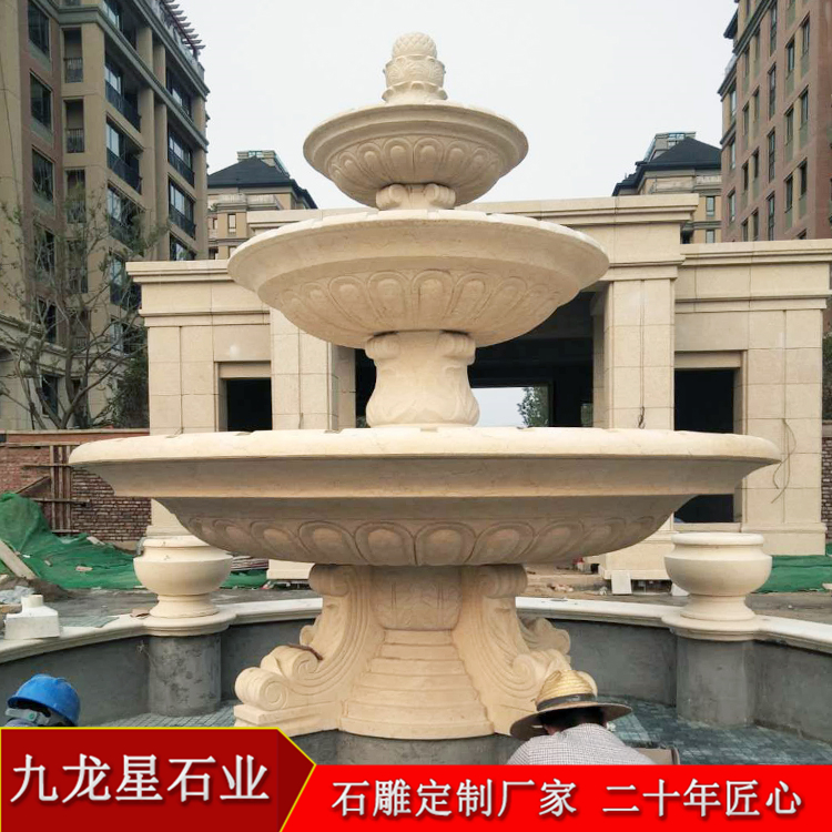 定做埃及米黃水缽 大理石噴泉價(jià)格——九龍星石業(yè)。