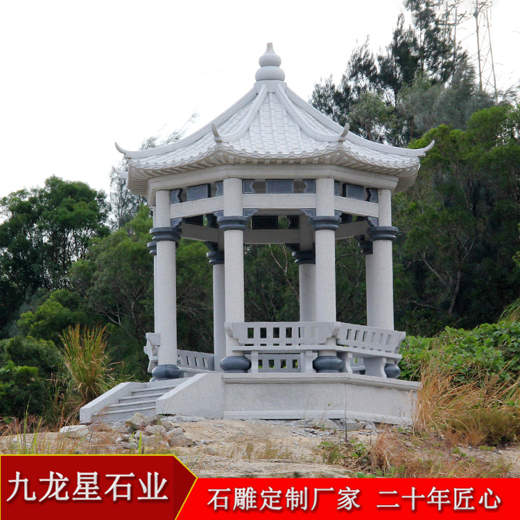 石雕六角涼亭 室外涼亭價(jià)格 仿古涼亭哪家好——九龍星石業(yè)廠家直銷定做。