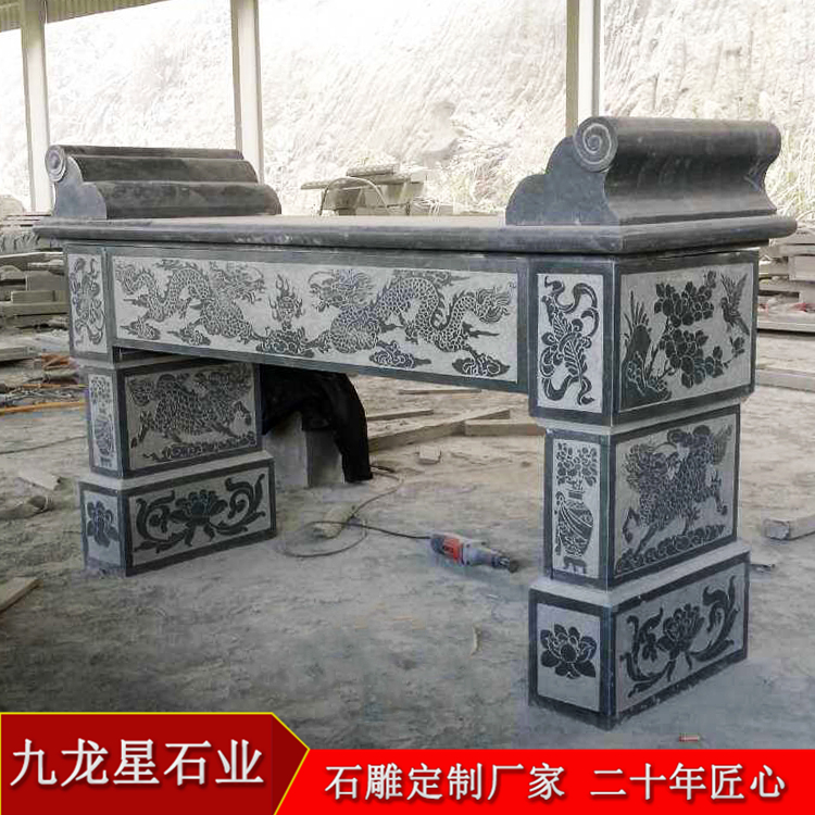 石雕供桌的價格 寺廟石頭雕刻供桌圖片——九龍星石業(yè),可根據客戶的需求來進行設計生產。