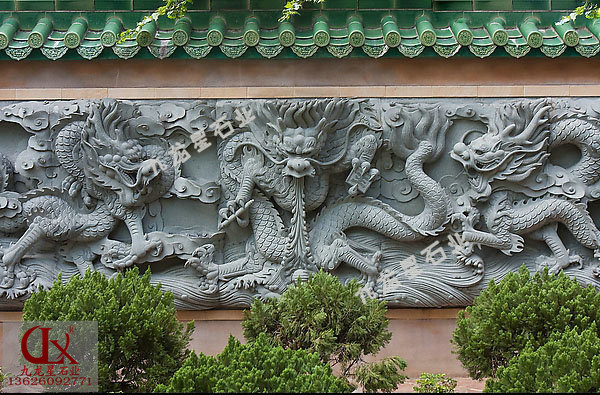 寺廟石雕照壁的由來有很多說法,除了故事和傳說,有一些說法源于風(fēng)水,認(rèn)為石雕照壁是中國(guó)受風(fēng)水意識(shí)影響而產(chǎn)生的一種獨(dú)具特色的建筑形式,稱“影壁”或“屏風(fēng)墻”。風(fēng)水講究導(dǎo)氣,氣不能直沖廳堂或臥室,否則不吉。浮雕九龍壁照壁是為了給庭院增加氣氛,祈禱吉祥的,就大門外說,是增加了大門的氣勢(shì),就門內(nèi)來說,則營(yíng)造了一種和諧、安靜、幽雅的環(huán)境。