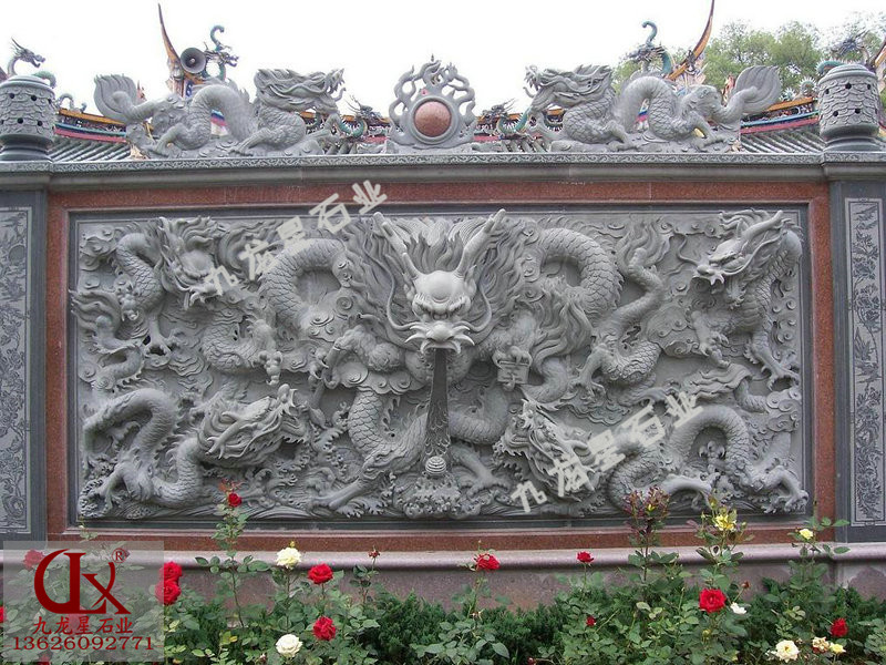 石雕九龍壁(寺廟石雕照壁 浮雕九龍壁照壁)——九龍星石業(yè),可根據(jù)需求設(shè)計(jì)生產(chǎn)。
