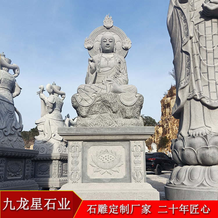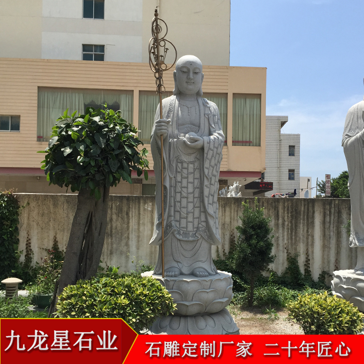 石雕地藏王菩薩像是善男信女為觀音佛像雕刻塑身的主要對象之一,為地藏菩薩塑真身是消除孽障的較快方法。而地藏菩薩石雕對我們實施的教育有三種:一為斷惡。二為修福。三為修三昧。斷惡是不墮惡道的保證。修福是福報的源泉。修三昧是超凡入圣的因。
