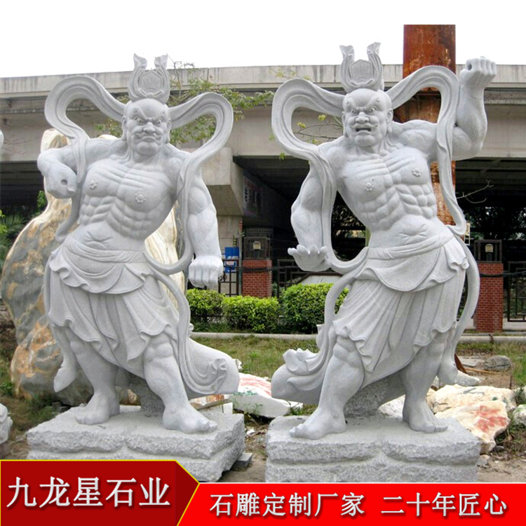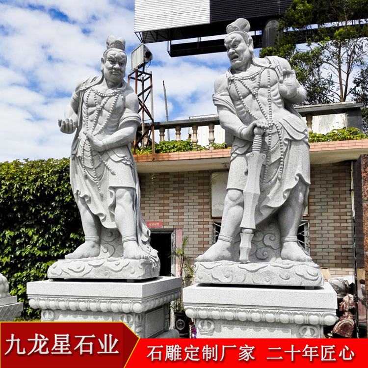 石雕哼哈二將一般是采用花崗巖石材來雕刻的。石雕哼哈二將雕塑是佛教中守護廟門的兩個神,形象威武兇惡,《封神演義》中把它們描寫成兩個有法術(shù)的督糧官,一個鼻子里哼出白氣,一個口中哈出黃氣。用來比喻有權(quán)勢者手下得力而盛氣凌人的人(如果碰巧是兩個),也比喻狼狽為奸的兩個人。