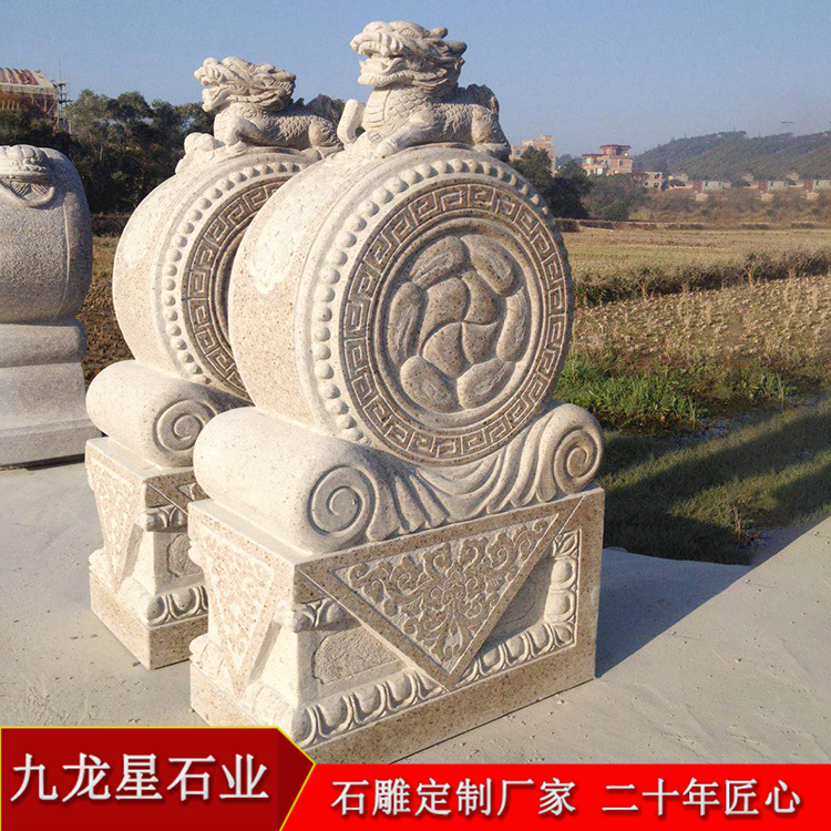 大門前的石雕抱鼓石 青石雕刻門墩抱鼓石——九龍星石業(yè)。