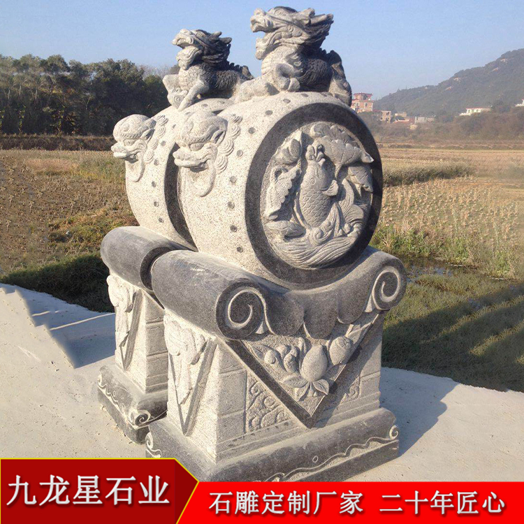 青石雕刻門墩抱鼓石一般是指位于宅門入口,形似圓鼓的兩塊人工雕琢的石制構件,因為它有一個猶如抱鼓的形態(tài)承托于石座之上,故此得名。