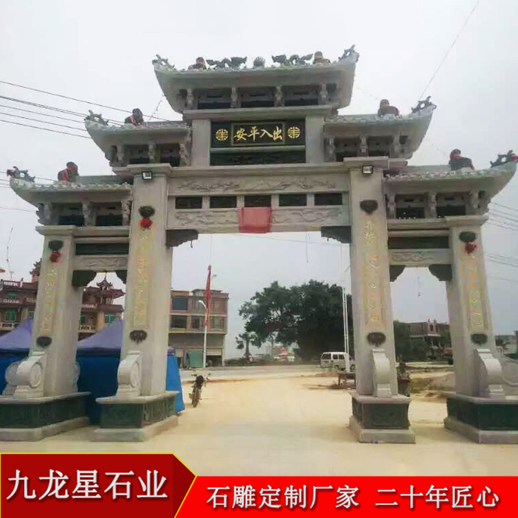 農(nóng)村村口牌坊簡潔大方 村莊石頭牌坊圖片——九龍星石業(yè),二十年雕刻工藝。