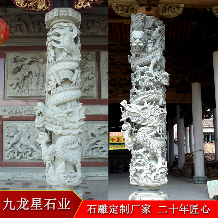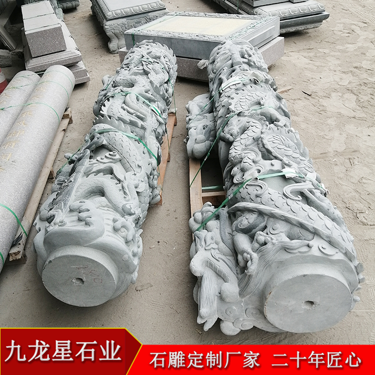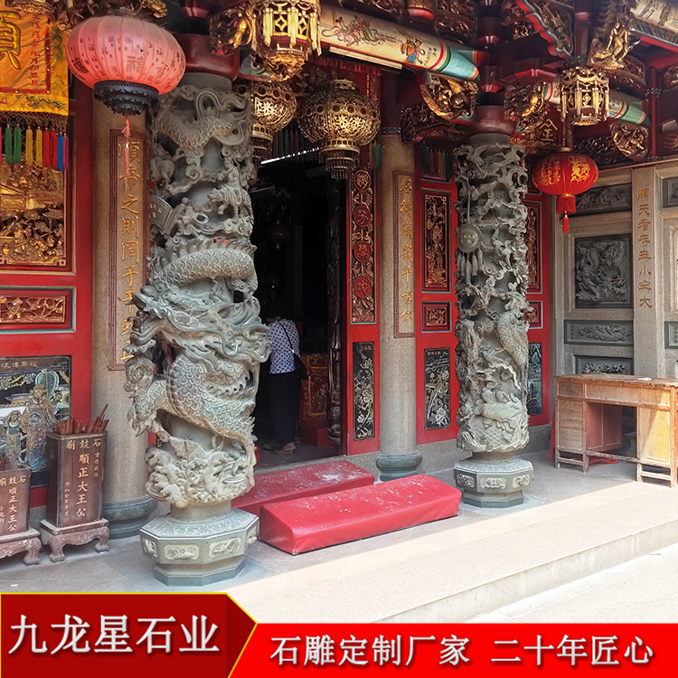 青石盤龍柱圖片 祠堂門口的龍柱多少錢——九龍星石業(yè)。
