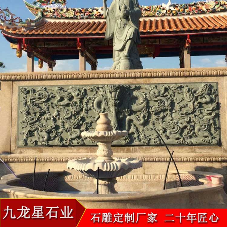 浮雕墻石雕照壁 花崗巖石雕九龍壁定制