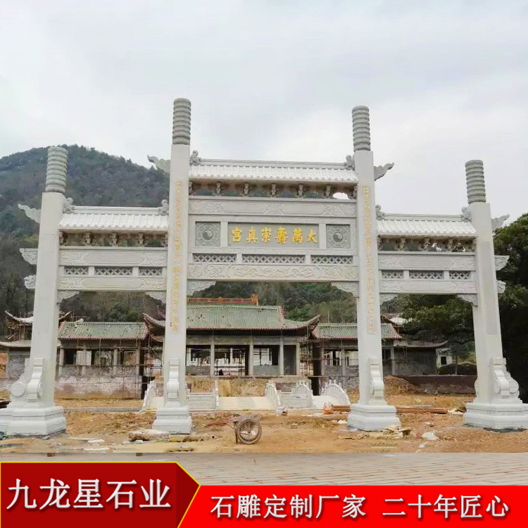 很多人認(rèn)為寺院牌坊雕刻只是需要擺放在寺廟的最外面就可以了,其實(shí)根本不是這樣的,寺廟的山門在排列上一定要遵從寺廟建筑學(xué)的意義,整座寺廟從開始建造就并不是單一的作品,而是整體結(jié)合的作品,寺院牌坊和天王殿要用一根垂直的直線連接在一起,并且zui好是南北向的中軸線,也可以用東西走向的中軸線,但是南北走向的線是zui好的,畢竟坐北朝南的建筑在中國(guó)建筑上是zui佳的風(fēng)水位置,然后南北走向的線路依次排列山門牌坊、天王殿、大佛殿、大雄寶殿,如果還有其他殿也是按照這樣的排列順序依次排列下去。寺院牌坊之所以一定要和天王殿排列成一條直線,所以位置和方位一定要千萬注意。