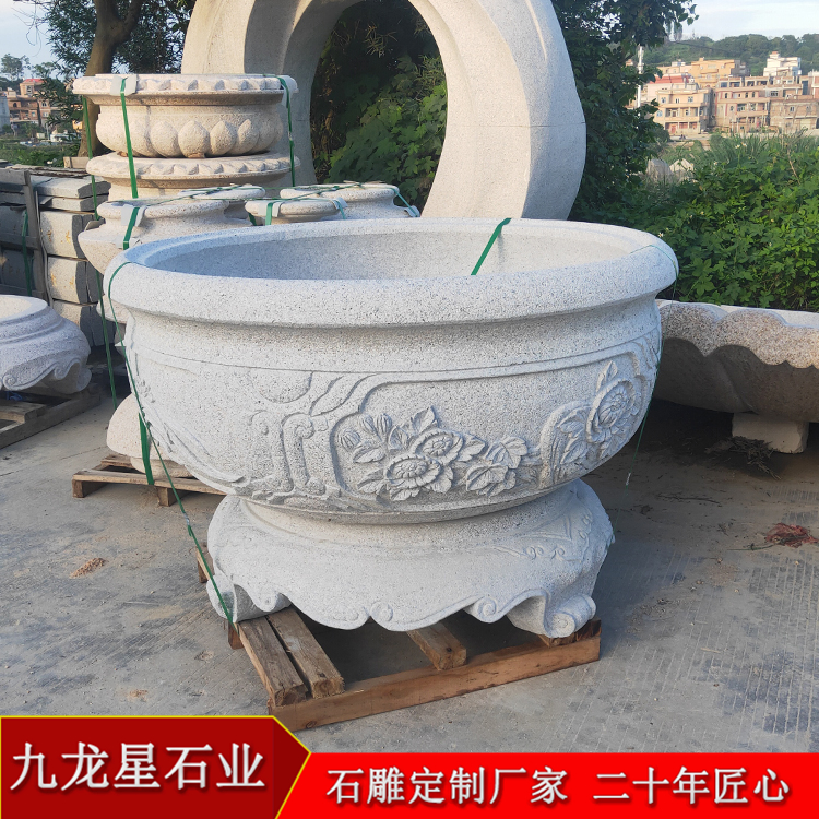 花崗巖成品花以其雕刻精美性、表現(xiàn)細(xì)節(jié)的細(xì)膩性、大氣美觀的造型、以及能長久地在室內(nèi)戶外場所使用的特點(diǎn),受到很多園林景觀設(shè)計(jì)師的青睞。因此大口徑石盆定制被大量運(yùn)用在城市或園林景觀建設(shè)當(dāng)中,成為人們常見的花草栽種器具。