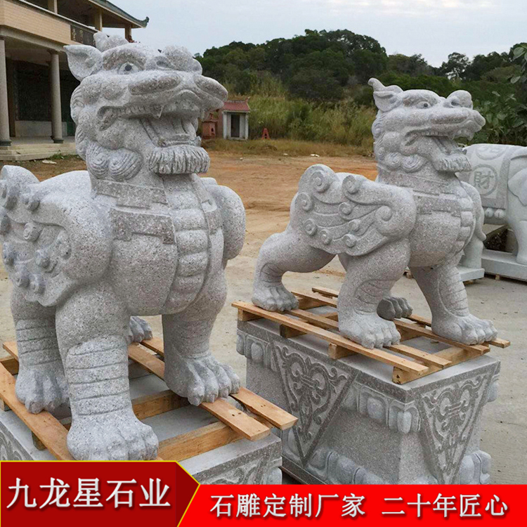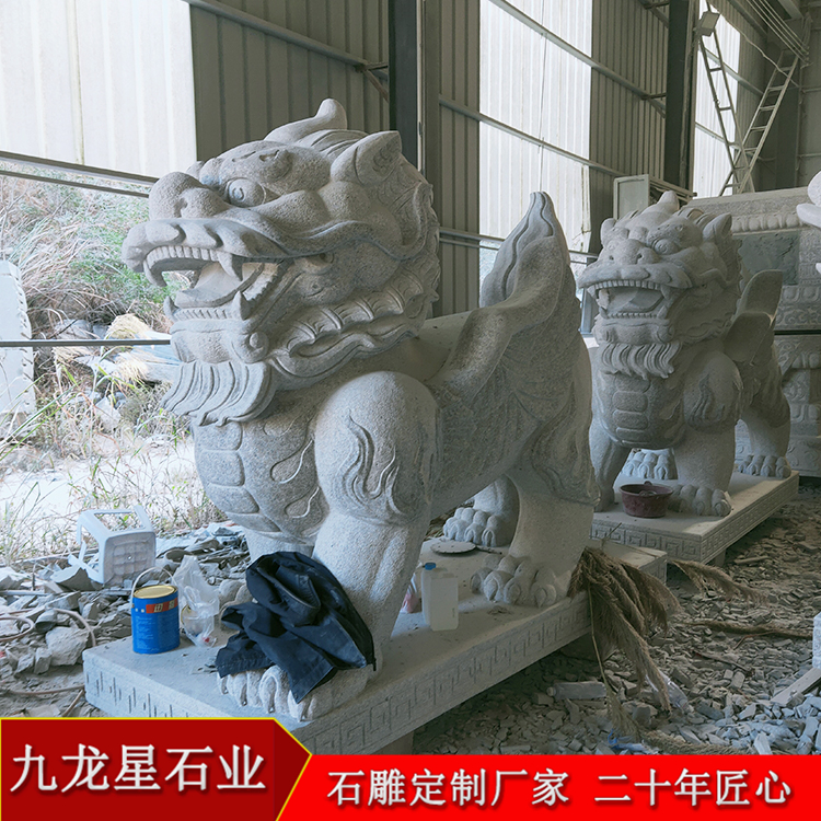 大門口石雕貔貅擺件 貔貅雕塑圖片大全——九龍星石業(yè)。