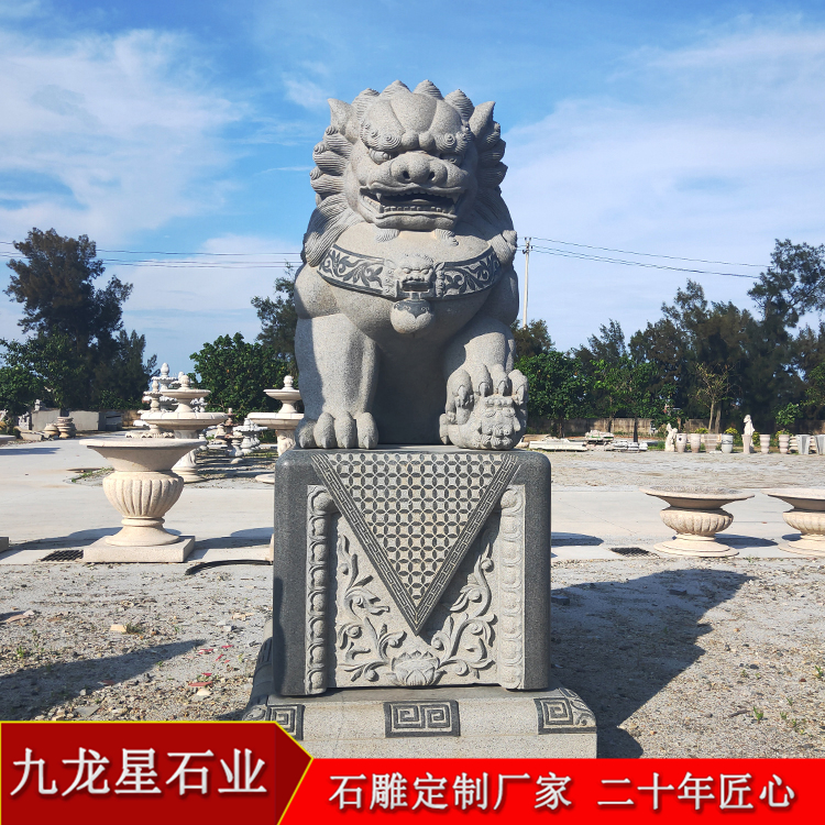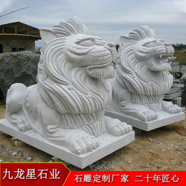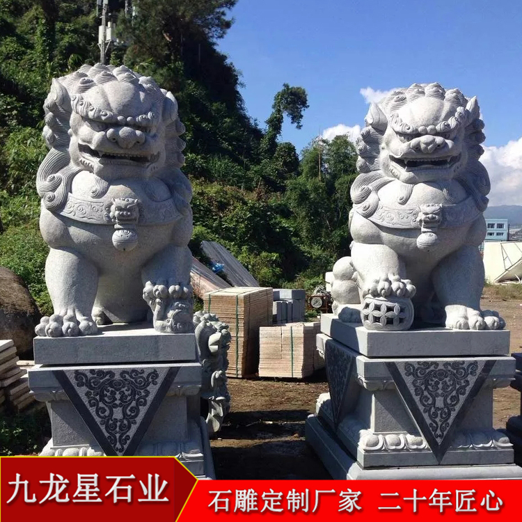 石雕石頭獅子雕塑既美觀又取其納福招瑞吉祥寓意,很受人們的喜愛。一對石獅子,一頭公一頭母,公獅子的腳下踩著球代表權(quán)力和統(tǒng)一,母獅子腳下踩著一頭小獅子,表示母儀天下。獅子雕刻形態(tài)各異、種類繁多,漸漸形成帶有中國獨(dú)特風(fēng)格的獅子石雕藝術(shù)。