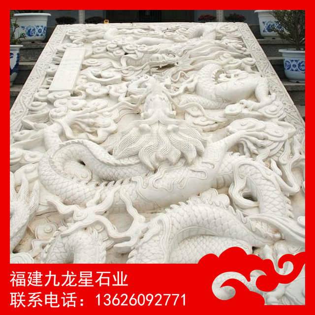 漢白玉九龍壁浮雕 漢白玉浮雕